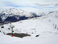 Skiing is popular in the Pyrenean north of Aragon, at resorts such as Formigal and Candanchú.[27] The Aragonese city of Jaca in the Pyrenees bid to host the Winter Olympics from 2002 to 2014.[28] Zaragoza was considering a bid for the 2022 Winter Olympics,[29][30] but dropped it in 2011 to strengthen the chance of Barcelona winning the games.[31]