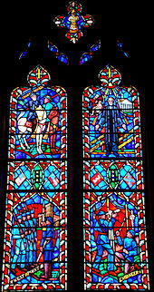 In 1953, two stained-glass windows – one honoring Lee, the other Stonewall Jackson – were installed in the Washington National Cathedral.[169] The stained glass of Lee shows him on horseback at Chancellorsville; it was sponsored by the United Daughters of the Confederacy.[170] In 2017, these windows were removed by a vote of the cathedral's governing board. The cathedral plans to keep the windows and eventually display them in historical context.[169]