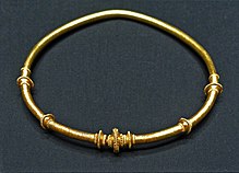 Neck ring with plug clasp from the Vandalic Treasure of Osztrópataka displayed at the Kunsthistorisches Museum in Vienna, Austria.
