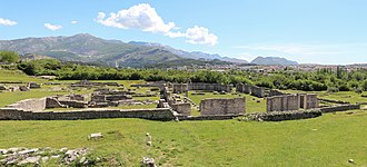 Salona's continuing prosperity resulted in extensive church building in the fourth and fifth centuries, including an episcopal basilica and a neighboring church and baptistery inside the walls, and several shrines honoring martyrs outside. These have made it a major site for studying the development of Christian sacred architecture.[7]