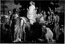 Omens occur frequently throughout the Odyssey. Within the epic poem, they frequently involve birds.[40] According to Thornton, most crucial is who receives each omen and in what way it manifests. For instance, bird omens are shown to Telemachus, Penelope, Odysseus, and the suitors.[40] Telemachus and Penelope receive their omens as well in the form of words, sneezes, and dreams.[40] However, Odysseus is the only character who receives thunder or lightning as an omen.[41][42] She highlights this as crucial because lightning, as a symbol of Zeus, represents the kingship of Odysseus.[40] Odysseus is associated with Zeus throughout both the Iliad and the Odyssey.[43]