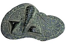 The exta were the entrails of a sacrificed animal, comprising in Cicero's enumeration the gall bladder (fel), liver (iecur), heart (cor), and lungs (pulmones).[56] The exta were exposed for litatio (divine approval) as part of Roman liturgy, but were "read" in the context of the disciplina Etrusca. As a product of Roman sacrifice, the exta and blood are reserved for the gods, while the meat (viscera) is shared among human beings in a communal meal. The exta of bovine victims were usually stewed in a pot (olla or aula), while those of sheep or pigs were grilled on skewers. When the deity's portion was cooked, it was sprinkled with mola salsa (ritually prepared salted flour) and wine, then placed in the fire on the altar for the offering; the technical verb for this action was porricere.[57]