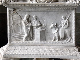 Extraordinary circumstances called for extraordinary sacrifice: in one of the many crises of the Second Punic War, Jupiter Capitolinus was promised every animal born that spring (see ver sacrum), to be rendered after five more years of protection from Hannibal and his allies.[53] The "contract" with Jupiter is exceptionally detailed. All due care would be taken of the animals. If any died or were stolen before the scheduled sacrifice, they would count as already sacrificed, since they had already been consecrated. Normally, if the gods failed to keep their side of the bargain, the offered sacrifice would be withheld. In the imperial period, sacrifice was withheld following Trajan's death because the gods had not kept the Emperor safe for the stipulated period.[54] In Pompeii, the Genius of the living emperor was offered a bull: presumably a standard practise in Imperial cult, though minor offerings (incense and wine) were also made.[55]