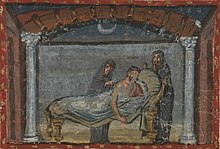In the later Imperial era, the burial and commemorative practises of Christian and non-Christians overlapped. Tombs were shared by Christian and non-Christian family members, and the traditional funeral rites and feast of novemdialis found a part-match in the Christian Constitutio Apostolica.[108] The customary offers of wine and food to the dead continued; St Augustine (following St Ambrose) feared that this invited the "drunken" practices of Parentalia but commended funeral feasts as a Christian opportunity to give alms of food to the poor. Christians attended Parentalia and its accompanying Feralia and Caristia in sufficient numbers for the Council of Tours to forbid them in AD 567. Other funerary and commemorative practices were very different. Traditional Roman practice spurned the corpse as a ritual pollution; inscriptions noted the day of birth and duration of life. The Christian Church fostered the veneration of saintly relics, and inscriptions marked the day of death as a transition to "new life".[109]