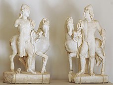 Pair of Roman statuettes from the third century AD depicting the Dioscuri as horsemen, with their characteristic skullcaps (Metropolitan Museum of Art, New York).