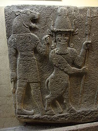 Myths regarding deities that were not originally Hittite were often adapted and assimilated. The Mesopotamian goddess Ishtar (Ištar) was one of the many adopted deities who were assimilated into Hittite pantheons through association with similar deities and adjustments to their myths. Since mythology was a large part of Hittite cult practice, an understanding of Ishtar’s powers and history was essential to the development of rituals and incantations invoking her.[10] Subtle changes like this were also made possible with her absorption/close association of other goddesses, namely Anzili, as well as Šawuška, and Geštinanna. With the personality traits of multiple other goddesses, Ishtar's power grew, as did her popularity. One innovative way that she was utilized was in purification rituals such as Allaiturahhi’s, in which her affinity for the underworld was exploited and interpreted in a way that benefited the reader and cast her as a protector, rather than a victim, as in Mesopotamian myth. Ishtar's relationship with the underworld also made her a valuable chthonic deity, especially when her other affinities for war, sexuality, and magic were considered. The combination of these characteristics greatly increased her influence, as fertility of the earth was one of the most fundamental priorities for the Hittites.[9][10] The Hittites even recognized that she was fairly prominent in other cultures and created a ritual which "treats her as an international goddess".[22] The differences between outsider deities like Ishtar were respected, even though she had been appropriated for Hittite usage.