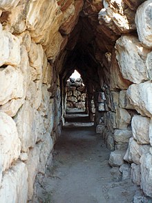 Part of the galleries within the walls of Tiryns (source : Mycenaean Greece, Wikipedia)