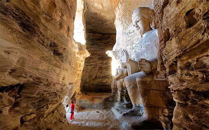 Shrine (불상) in Powell's tunnel at Grand Canyon (1909년 발견됨) (자료 : "The Pyramids of the Grand Canyon, its “Off-Limit” Areas, & Egyptian Relics" https://dailyoddsandends.wordpress.com/2019/10/20/the-pyramids-of-the-grand-canyon-its-off-limit-areas-egyptian-relics/)