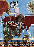 동시대의 히타이트에서도 마차 전차를 이용했다. (아래 그림 참조) 마케도니아에서 출발한 진시황의 진나라도 청동제 무기를 많이 쓰고 마차를 많이 이용한 것이 이러한 미케네문명의 영향인지도 모른다.