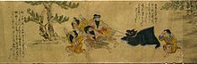 Recent research suggests that Ainu culture originated from a merger of the Okhotsk and Satsumon cultures.[11][12] According to Lee and Hasegawa, the Ainu-speakers descend from the Okhotsk people which rapidly expanded from northern Hokkaido into the Kurils and Honshu. These early inhabitants did not speak the Japanese language; some were conquered by the Japanese early in the 9th century.[13] In 1264, the Ainu invaded the land of the Nivkh people. The Ainu also started an expedition into the Amur region, which was then controlled by the Yuan Dynasty, resulting in reprisals by the Mongols who invaded Sakhalin.[14][15] Active contact between the Wa-jin (the ethnically Japanese, also known as Yamato-jin) and the Ainu of Ezogashima (now known as Hokkaidō) began in the 13th century.[16] The Ainu formed a society of hunter-gatherers, surviving mainly by hunting and fishing. They followed a religion which was based on natural phenomena.[17]