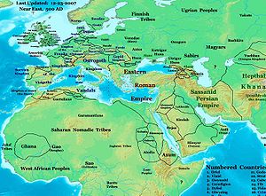 Near East in 500 AD, showing the Sabirs and neighboring peoples.