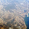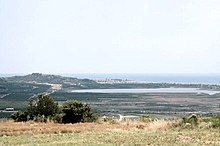 The ancient Persian fort at Eion (left) and the mouth of the Strymon River (right), seen from Ennea Hodoi (Amphipolis)