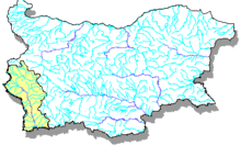 The Struma or Strymónas (Bulgarian: Струма [ˈstrumɐ]; Greek: Στρυμόνας [striˈmonas]; Turkish: (Struma) Karasu [kaɾaˈsu], 'black water') is a river in Bulgaria and Greece. Its ancient name was Strymṓn (Greek: Στρυμών [stryˈmɔːn]). Its drainage area is 17,330 km2 (6,690 sq mi), of which 10,797 km2 (4,169 sq mi) in Bulgaria, 6,295 km2 (2,431 sq mi) in Greece and the rest in North Macedonia.[1] It takes its source from the Vitosha Mountain in Bulgaria, runs first westward, then southward, forming a number of gorges, enters Greek territory at the Kula village. In Greece it is the main waterway feeding and exiting from Lake Kerkini, a significant centre for migratory wildfowl. The river flows into the Strymonian Gulf in Aegean Sea, near Amphipolis in the Serres regional unit. The river's length is 415 kilometres (258 miles) (of which 290 kilometres (180 mi) in Bulgaria, making it the country's fifth-longest and one of the longest rivers that run solely in the interior of the Balkans.