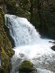 The Sana in its upper course is fast mountain river with upland freshwater ecology, and its waters being very clear and cold. Gushing out of the karst plateau with Ovčara as most prominent summit (1576 m), between Klekovača and Vitorog mountains, and flows toward alluvial plains of the Bosanska Krajina with lowland freshwater ecology. Well-spring areal is located in the vicinity of Marići village, between surrounding villages of Gornja and Donja Pečka, Gornji and Donji Vrbljani, and Medna, on the territories of Ribnik and Mrkonjić Grad municipality not far from the town of Šipovo. The source itself consists of four major and water abundant karstic well-springs, with relatively high average discharge, and after about hundred meters first three individual wellsprings merge with a main course, which is set by the small stream of Korana coming from the right form direction of Gornja Pečka village, receiving the Sana springs one-by-one, with first three supplementing it from the left and, after just a little more than one kilometre downstream, with the fourth from the right. This fourth well-spring is also known for the Mračaj karstic cave from which it emerges. From this point the Sana is formed river, with steady average discharge. The river at this point is still with low average discharge, and receiving the waters of several other smaller streams, but after just about 17 km the Sana meet with its first major tributary, the short but water abundant river, the Ribnik. The area surrounding confluence of the two rivers is called Ribnik, and is divaded between two settlements, Gornji and Donji Ribnik. From Ribnik, the Sana runs through a valley in a south-to-north-northwestern direction as it reach the historic town of Ključ.