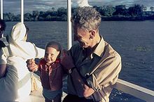 Tourist boat on the Zambezi River, Mosi-oa-Tunya National Park, Zambia. 1971 photo.