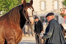 The most powerful folk figure is the Ankou or the "Reaper of Death". Sometimes a skeleton wrapped in a shroud with the Breton flat hat, sometimes described as a real human being (the last dead of the year, devoted to bring the dead to Death), he makes his journeys by night carrying an upturned scythe which he throws before him to reap his harvest. Sometimes he is on foot but mostly he travels with a cart, the Karrig an Ankou, drawn by two oxen and a lean horse. Two servants dressed in the same shroud and hat as the Ankou pile the dead into the cart, and to hear it creaking at night means you have little time left to live.[70]