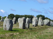 Neolithic Brittany is characterised by important megalithic production and sites such as Quelfénnec, it is sometimes designated as the "core area" of megalithic culture.[18] The oldest monuments, cairns, were followed by princely tombs and stone rows. The Morbihan département, on the southern coast, comprises a large share of these structures, including the Carnac stones and the Broken Menhir of Er Grah in the Locmariaquer megaliths, the largest single stone erected by Neolithic people.