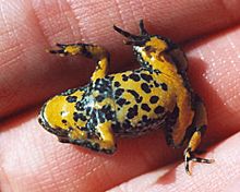 Most amphibians of the Loire are found in the slow flow areas near the delta, especially in the floodplain, marshes and oxbows. They are dominated by the fire salamander (Salamandra salamandra), frogs and toads. The toads include Bufo bufo, Alytes obstetricans, Bombina variegata, Bufo calamita, Pelobates fuscus and Pelobates cultripes. The frogs are represented by the Parsley frog (Pelodites punctatus), European tree frog (Hyla arborea), Common Frog (Rana temporaria), Agile Frog (R. dalmatina), Edible Frog (R. esculenta), Perez's Frog (R. perezi), marsh frog (R. ridubunda) and Pool Frog (R. lessonae). Newts of the Loire include the Marbled Newt (Triturus marmoratus), Smooth Newt (T. vulgaris), Alpine Newt (T. alpestris) and Palmate Newt (T. helveticus).[1]