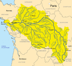 Studies of the palaeo-geography of the region suggest that the palaeo-Loire flowed northward and joined the Seine,[9][10] while the lower Loire found its source upstream of Orléans in the region of Gien, flowing westward along the present course. At a certain point during the long history of uplift in the Paris Basin, the lower, Atlantic Loire captured the "palaeo-Loire" or Loire séquanaise ("Seine Loire"), producing the present river. The former bed of the Loire séquanaise is occupied by the Loing.