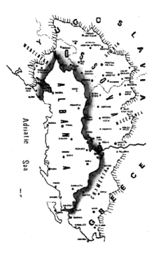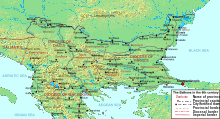 During the conflicts between Michael II Komnenos Doukas of Epirus and Emperor John III Doukas Vatatzes, Golem (ruler of Arbanon at the time) and Theodore Petraliphas, who were initially Michael's allies, defected to John III in 1252.[39] He is last mentioned in the sources among other local leaders, in a meeting with George Akropolites in Durrës in 1256. Arbanon was a beneficiary of the Via Egnatia trade road, which brought wealth and benefits from the more developed Byzantine civilization.[40]