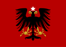 After his desertion, Skanderbeg re-converted to Christianity and declared war against the Ottoman Empire,[52] which he led from 1443 to 1468. Skanderbeg summoned the Albanian princes to the Venetian-controlled town of Lezhë where they formed the League of Lezhë.[53] Gibbon reports that the "Albanians, a martial race, were unanimous to live and die with their hereditary prince", and that "in the assembly of the states of Epirus, Skanderbeg was elected general of the Turkish war and each of the allies engaged to furnish his respective proportion of men and money".[54] Under a red flag bearing Skanderbeg's heraldic emblem, an Albanian force held off Ottoman campaigns for twenty-five years and overcame a number of the major sieges: Siege of Krujë (1450), Second Siege of Krujë (1466–67), Third Siege of Krujë (1467) against forces led by the Ottoman sultans Murad II and Mehmed II. For 25 years Skanderbeg's army of around 10,000 men marched through Ottoman territory winning against consistently larger and better supplied Ottoman forces.[45]