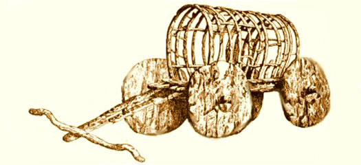 This primitive Yamnaya Horizon wagon was unearthed at Lchashen, on the western shore of Lake Sevan in modern Armenia in the South Caucuses, but the style would have been very similar in the North Caucuses and on the Pontic-Caspian steppe (source : Kingdom of Anatolia-Cimmerians, The History Files)