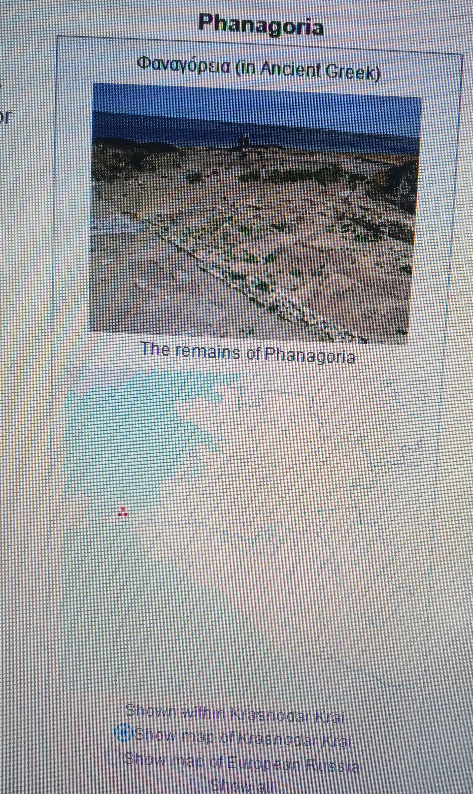 Today the site is located at a short distance to the west of Sennoy in Krasnodar Krai, Russia. Another ancient Greek city, Hermonassa, lies 25 kilometres (16 mi) to the west, on the shoreline of modern Taman.