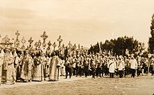 The city is mentioned for the first time under the name of Poltava no later than 1430.[7] Supposedly, in 1430 the Lithuanian duke Vytautas gave the city, along with Glinsk (today a village near the city of Romny) and Glinitsa, to Murza Olexa (Loxada Mansurxanovich), who moved to the Grand Duchy of Lithuania from the Golden Horde.[7] In 1430 Murza Olexa was baptized as Alexander Glinsky, who was a progenitor of the Glinsky family.[7] According to Shenninkov, Alexander Glinsky must have been baptized in 1390 by Cyprian, Metropolitan of Kyiv, who had just regained his title of Metropolitan of Kyiv and all Russia (rather than the Metropolitan of Russia Minor and Lithuania) and on 6 March 1390 permanently moved to Muscovy.[9]