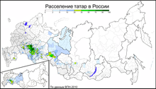 Tatar-inhabited areas in Russia according to the Russian Census of 2010