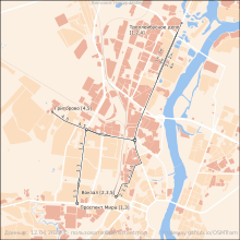 Local transportation consists of a network of buses andtrolleybuses. The trolleybus network, which currently consists of five routes, started operating in 1995 and is the first trolley system opened in Russia after the fall of theSoviet Union.