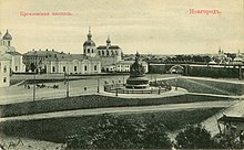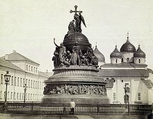 TheNovgorod Kremlin, traditionally known as theDetinets, also contains the oldest palace in Russia (the so-called Chamber of the Facets, 1433), which served as the main meeting hall of the archbishops; the oldest Russian bell tower (mid-15th century), and the oldest Russian clock tower (1673). The Palace of Facets, the bell tower, and the clock tower were originally built on the orders of Archbishop Euphimius II, although the clock tower collapsed in the 17th century and had to be rebuilt and much of the palace of Euphimius II is no longer standing. Among later structures, the most remarkable are a royal palace (1771) and a bronze monument to theMillennium of Russia, representing the most important figures from the country's history (unveiled in 1862).