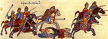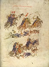 Pursuit of Sviatoslav's warriors by the Byzantine army, a miniature from 11th century chronicles ofJohn Skylitzes.