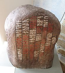 The Varangian boats were used along the rivers and along the Black Sea shores. According to Constantine VII, the navigation near the western shore of Black Sea contained stops at Sulina (Danube Delta), Conopa, Constantia (localities today in Romania). There are some remains of the Varangian presence in this area at Murfatlar Cave Complex near Constantia (today Constanţa, Romania).[4] Numerous runic inscriptions, symbols and even a graffiti of a Viking navy are visible on the walls of the rock church from Murfatlar.[5][6] A rune stone from the Sjonhem cemetery in Gotland dating from the 11th century commemorates a merchant Rodfos who was traveling to Constantinople and was killed north of the Danube by the Blakumenn (Vlachs).[7]