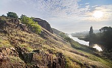 The city is set in the rolling steppe land surrounded by fields of sunflowers and grain. A short distance east of the city center, there is an area along a small lake where glacial boulders were deposited. As a result, this area was never cultivated and contains one of the few remaining patches of wildsteppevegetation in the area. The city'senvironmentalandconstructionsafetyis a growing problem due to abandonedminesandpollutedore-processingwaste. According to the Scientific Hygienic Centre of Ukraine, the city is one of the most unfavorable places to live because of these problems.[127]