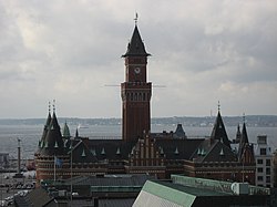 In the middle of the 14th century the Black Death affected the area as much as in most of Europe.[5][6] Generally the population declined with a third or more.[7][8][9] By the end of this century, the Kalmar Union rose as an attempt to counter the Hanseatic League.[10] The Union was largely a creation of Queen Margaret who had become Queen in Denmark and Norway in 1387, as her only son, King Olaf II of Denmark and IV of Norway died.[11] And two years later she helped the Swedes to get rid of the disliked Albert av Mecklenburg. Her adopted son Boguslaw, actual son of a Polish-Pomeranian Duke,[12] was given the name Eric of Pomerania, as he was crowned King of all three Scandinavian countries on 17 June 1397 in Kalmar, hence the name of the Union. Queen Margaret, remained as the de facto ruler of the three kingdoms more or less until her death in 1412. King Eric founded the Scanian Town, which today is known as Landskrona[13] at the central part of the all Danish Øresund, and introduced the Sound Dues (Øresundtolden) in 1429, which was to last until 1857 (with exception of Swedish ships between 1658 and 1720). By this he secured a large stable income for his kingdom that made it relatively rich and which made the town of Elsinore (Helsingør) flowering.[14] In the Franciscan monastery at Lund, "the Academy" was established in 1425. It was a kind of medieval university, but was closed when the Reformation reached Denmark in 1536.[15]