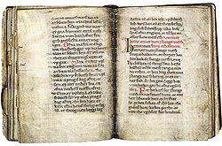 The Scanian law, the oldest of the Medieval Scandinavian laws, came into force in the beginning of the 13th century.[2] It is remarkable in the sense that it exists written in both Latin letters (not in Latin though) as well as Runes, Codex runicus.[3] Already in 1060 was Dalby Church build by Svend Estridsen, as one of the first Danish churches made of stone. Between 1104 and 1536, Lund was the Archbishopric of Denmark, and the Danish National Banner, Dannebrog, was preserved in the Cathedral for several centuries.[4]