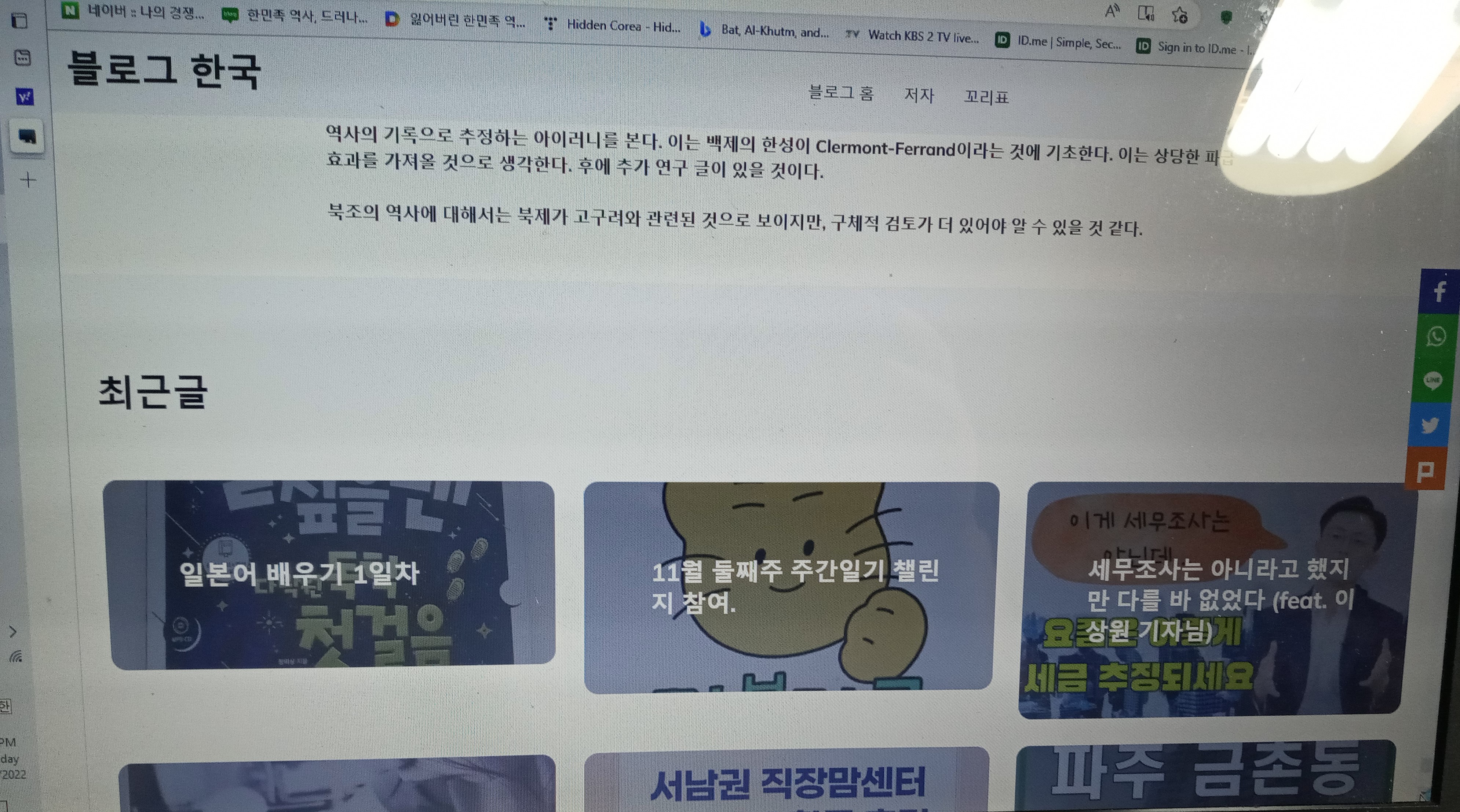 P4) "블로그 한국"이라 한다. 꼬리표를 누르니 나오는 화면이다. 역사 연구와는 거리가 멀다. 그런데 네이버에 찾아 보니 다른 site가 나온다. 아래 site는 짝퉁 site 또는 다른 제2의 사이트로 보인다.
