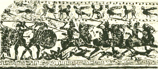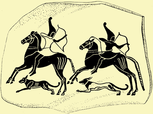 아래 그림에서 키메리언이 개를 이끌고 전투에 임하는 것을 볼 수 있다. 키메리언은 스키타인의 일종으로 중앙아시아에서 서쪽으로 진출했다. 즉 배사법의 활을 쓰는 이들은 고구려와 연관있는 부족으로 보인다. 협보는 주몽의 개국공신이었다. 따라서 협보가 남쪽으로 내려와 구사한국을 세웠는데, 키메리언과 관련 있어 보인다.