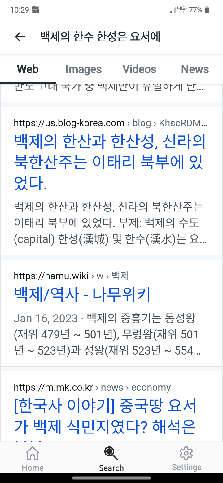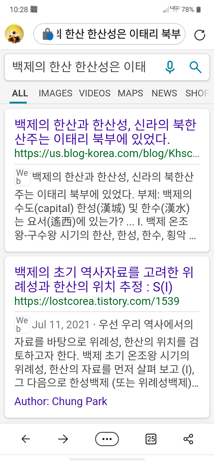 Microsoft Bing에 올라와 있는 필자의 글 : "백제의 한산과 한산성, 신라의 북한산주는 이태리 북부에 있었다" (필자의 네이버 블로그 글) 을 복사하여 올린 '블로그 한국(us)'의 저작권 침해 행위 사진