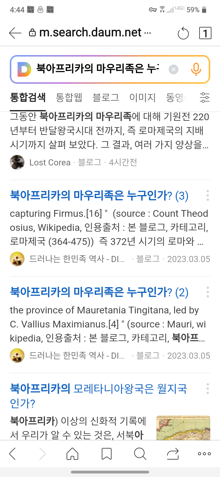 필자가 제목을 바꾸기 전에 네이버 블로그(드러나는 한민족역사)에 실린 제목이 다음 사이트에 실린 내용 screenshot