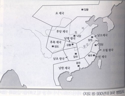 그러면 후당내에 등주가 있어야 한다. 그런데 우리는 위에서 등나라가 있던 곳을 등주라 했다 하였다. 춘추시대 등나라는 초문왕에 멸망했고 초문왕은 장강일대의 강국이 되었다고 했다. 그런데 위 지도를 보면 장강유역에 있는 초나라와 후당은 거리가 있다. 후당은 황허를 끼고 있고 초나라는 장강을 끼고 있다. 따라서 위의 지도는 중국의 역사기록과 일치하지 않는다.