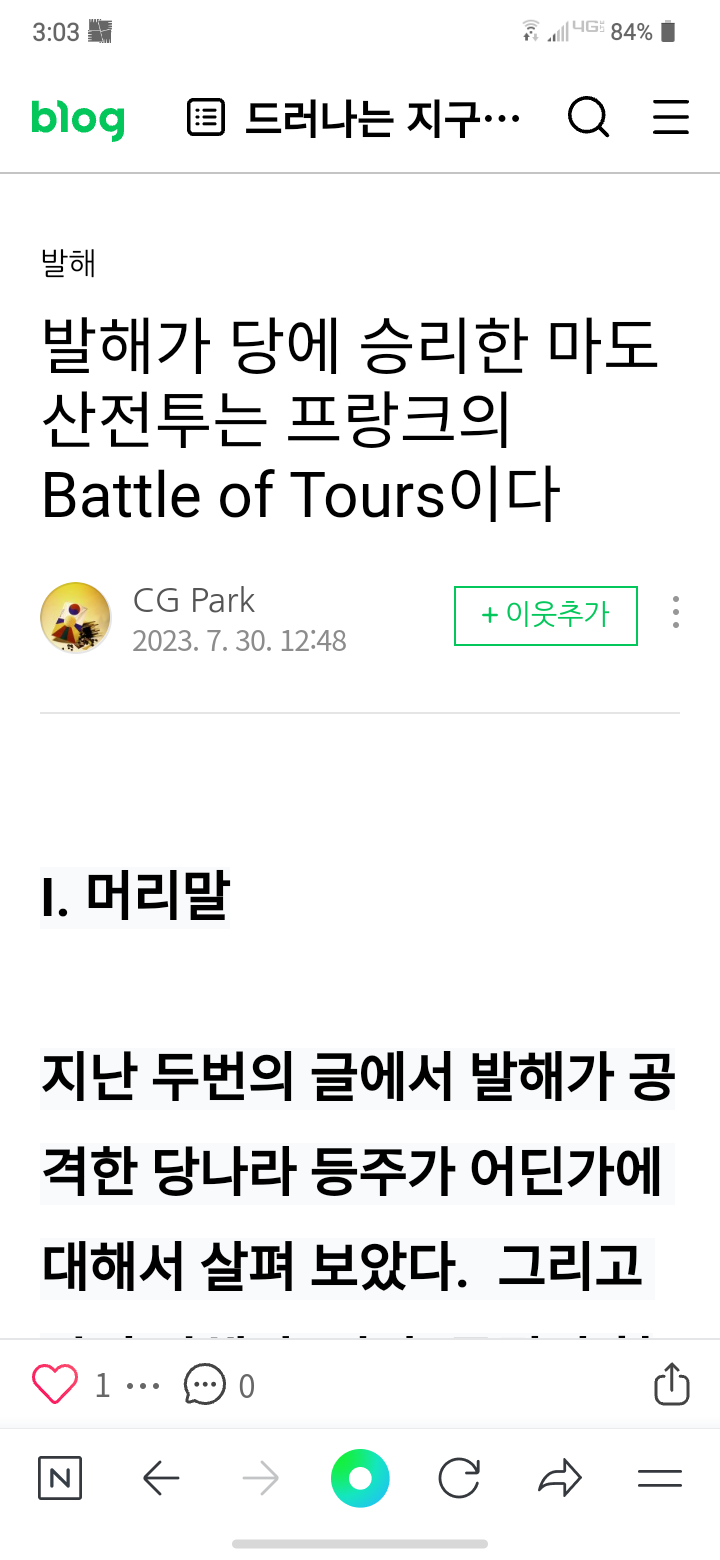 필자의 네이버 블로그 글의 제목 및 서두 부문 screenshot