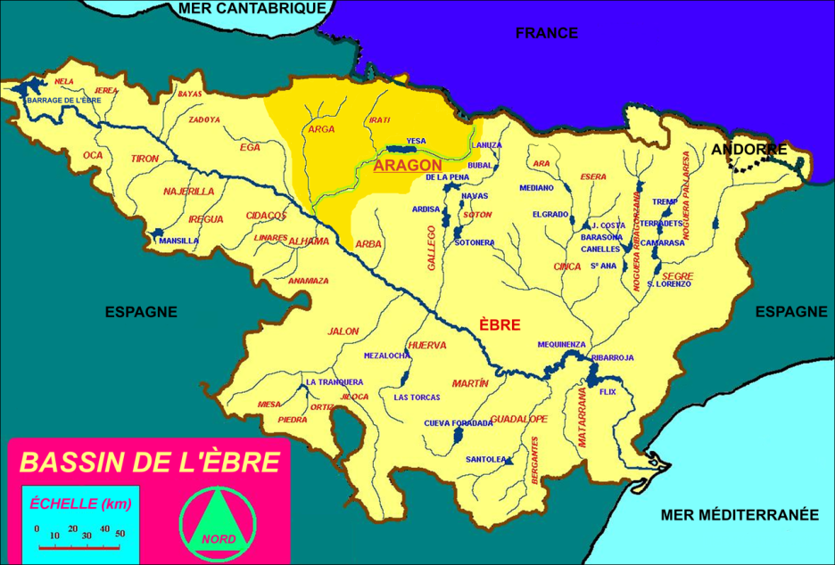 Watershed of Aragon river at Ebro river Bassin (source: Wikipedia)