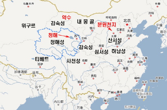 감숙성 약수의 남쪽에 있는 청해성. 조선의 중심이 산서성이라 가능. [사진=필자(성현식) 제공] (자료 : 상기 자료, 스카이데일리)