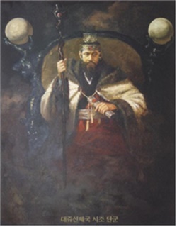 460년이 지난 갑진년(B.C. 2357)에 웅씨 왕은 14세 되는 ‘신인(神人) 왕검’을 비왕(裨王)으로 삼아 대읍(大邑)의 다스림을 대행시켰다. 웅씨 왕이 전쟁터에서 돌아가셔서 섭정 24년 만에 왕검이 왕위를 대신했고 단국(檀國)으로부터 아사달에 이르자 온 나라 사람들이 천제(天帝)의 아들로 받들어 모시니 구환(九桓)을 통일하고 나라 이름을 조선(朝鮮)이라 했다. 이가 바로 단군(檀君) 왕검이다.