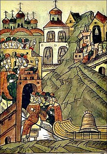 From the late 11th century the Novgorodians asserted greater control over the determination of their rules and rejected a politically dependent relationship to Kiev.[23] In 1136 they expelled prince Vsevolod Mstislavich accusing him of not caring for smerds, of trying to move to Pereslavl and of cowardliness and indecisiveness in military matters.[24] Svyatoslav Olgovich, the younger brother of Vsevolod of Chernigov, the main ally of the Mstislavichs and rival of the then Kiev prince, Yaropolk from the House of Monomakh, became the first prince independently called upon by the Novgorodians. Subsequently the Novgorodians were able to invite in and dismiss a number of princes. Often these invitations or dismissals were based on who was the dominant prince in Rus' at the time,[25] while sometimes the Novgorodians helped their allies to take these positions, as, for example, in 1212.