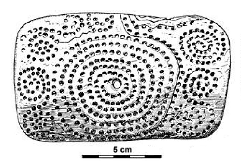 Mal'ta–Buret' culture centrally perforated ivory plaques with abstract circles, and three snakes[1] According to archeologist Don Hitchcock "the snake is rare in northern hemisphere Paleolithic art, presumably because the cold conditions precluded a wide distribution of snakes. In addition, it can be seen that the snakes have very broad heads, as though they belong to the Cobra group - yet Cobras are now known only in southern asian localities." It has yet to be clarrified how the creators of these ivory plaques know snakes, or if there are other possible interpretations for these.[91]