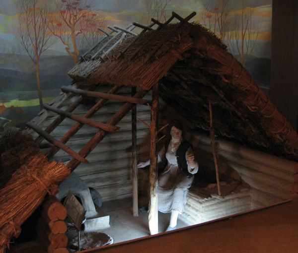The Srubnaya culture is named for its use of timber constructions within its burial pits. Its cemeteries consisted of five to ten kurgans. Burials included the skulls and forelegs of animals and ritual hearths. Stone cists were occasionally employed.[3] Srubnaya settlements consisted of semi-subterranean and two-roomed houses. The presence of bronze sickles, grinding stones, domestic cattle, sheep and pigs indicate that the Srubnaya engaged in both agriculture and stockbreeding.[3]