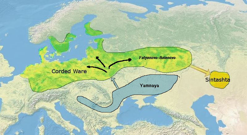 카스피해와 남부 우랄 사이 지역은 원래 Srubyana (1900 BC - 1200 BC)혈통과 Andronovo (BC 2000 - BC 1150) 혈통의 사람들 지역이었으나, 철기시대 (기원전 1000년)이후, 유럽인과 아시안 사이 종족적 문화적 교류가 매우 활발한 지역이었다. "