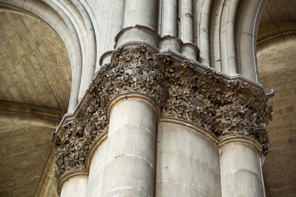 Reims Notre Dame Cathedral column detail of horse chestnut leaves (source : Wikipedia)